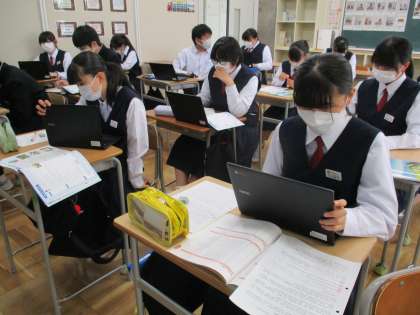 5月12日(金) 3年生(英語)「好きな食べ物や苦手な食べ物について発表しよう」 公開日 2023/05/16 更新日 2023/05/16 できごと いろいろな国の食べ物の文化を伝える文を読んできた3年生は,好きな食べ物や苦手な食べ物について自分が伝える番がきました。ウェブマップで伝えたいことを広げ,本文で学習した表現を使って文にしていきます。