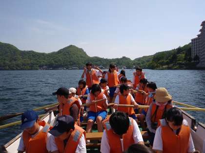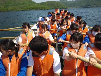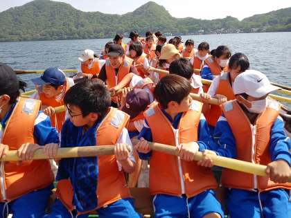 5月18日(木) 1年生 榛名カッター実習編 4 公開日 2023/05/18 更新日 2023/05/18 1年高原学校 先生方からアドバイスをもらったり、自分たちで工夫をしたりしながら、練習していくにつれて、ぐんぐん上手になりました。息があってすいすい進みました。 行事
