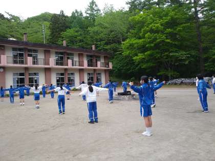 2日目の朝を迎えました。あいにくの空模様ですが,みんな元気です。