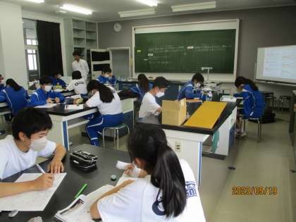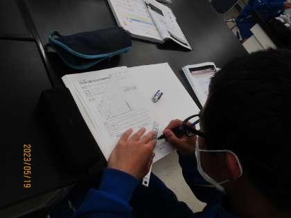 5月19日(金) 3年生(理科)「運動とエネルギー」 公開日 2023/05/19 更新日 2023/05/19 できごと 斜面を下る物体が受ける力と運動にはどのような関係があるのか?について予想を立てていました。特に、斜面が緩やかなときと急なときでどのようになるのか。生徒は、これまでの学習をもとに考えていました。そして、それを確かめるための実験へとつながります。