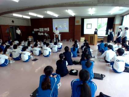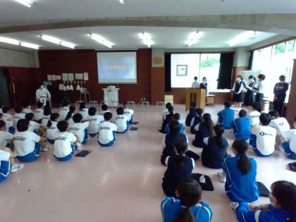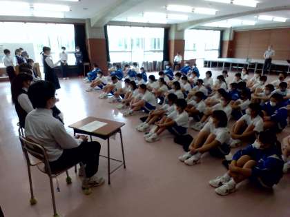 5月22日(月) 「生徒総会」 公開日 2023/05/23 更新日 2023/05/23 できごと 5時間目に前期の生徒総会が行われました。生徒会からはスローガンの発表と、意見箱の説明、挨拶強化週間や校則チェック、鬼中SDGs、陸上記録会スローガンについて発表がありました。その後、各委員会から活動内容、予算案について発表がありました。生徒全員が生徒会に入っています。令和5年度もよりよい鬼石中を生徒全員で作り上げていきましょう。 行事