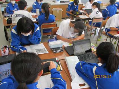 5月24日(水) 1年生(美術)「ことわざを漢字1字で表現しよう」 公開日 2023/05/24 更新日 2023/05/24 できごと ことわざの持つ意味を漢字1字(創作漢字)で表現するというめあてに向かって、各自が構想していました。ネットで調べて参考にしたり、一人でじっくりと考えたり様々です。
