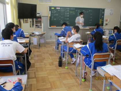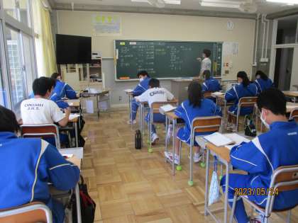 5月24日(水) 3年生(数学)「平方根」 公開日 2023/05/24 更新日 2023/05/24 できごと 3年生の数学は,今日から少人数指導に切り替わりました。まずは、平方根の学習です。これまでに学習したルートをを使って平方根を表現します。みんな集中して問題に取り組み、よくできている様子でした。