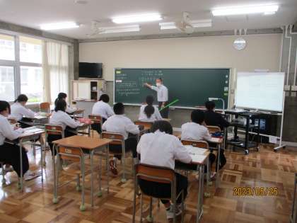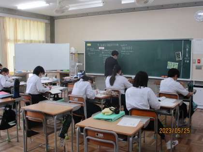 5月25日(木) 2年生(数学)「連立方程式」 公開日 2023/05/25 更新日 2023/05/25 できごと 2年生の学習は連立方程式に入りました。また、クラスを二つに分けて、よりきめ細かな指導ができるように少人数指導も開始しました。生徒も、より集中して取り組んでいます。