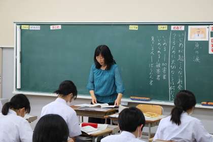 人権集中学習が来週から始まります。それに併せて、道徳の授業を教頭が行いました。人間の世界にいじめがあるけれど、魚の世界にもいじめはある。魚と人間の共通点や違うところを出し合いながら、いじめが起こらない人間の社会をつくるためにはどうしたらよいかについて真剣に考えました。