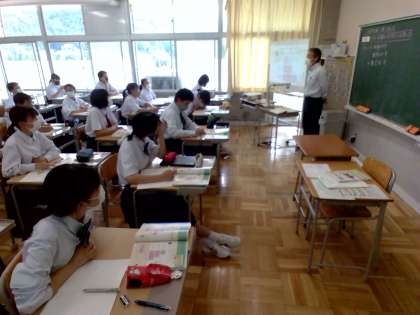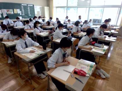 1年生の数学では、先日の小テストの結果が返されました。日頃の授業の内容は分かっていてもテストができるとは限りません。結果を踏まえて、どのようなところで間違いをしたのか、分析をして練習していくことで実力が高まります。期末テストでも同じような問題がでるので、計算力をしっかりと身に付けてほしいと思います。