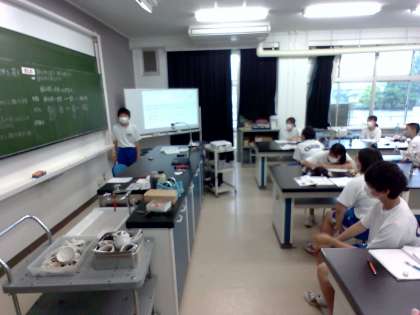 6月2日(金) 2年生(理科)「還元のしくみ」 公開日 2023/06/04 更新日 2023/06/04 できごと 実験の結果から、還元のしくみについて考えました。モデルを使って表すことで、化学反応式が作れるようになります。化学反応式やモデルから還元の際に、同時に酸化が起こっていることを学びました。陶器をつくるときなど、還元が身の回りでも使われていることも知りました。 授業 2年