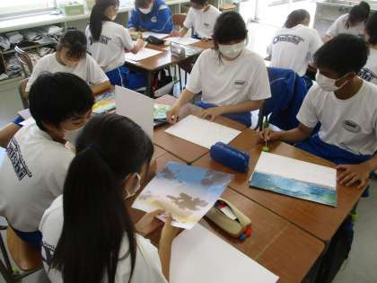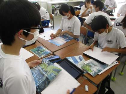 6月7日(水) 3年生(美術)「水彩画」 公開日 2023/06/12 更新日 2023/06/12 できごと 水彩技法を活用して光と影を表現することを目標に、一人一人が題材を決め制作に取り組んでいました。皆、思い思いの最高の作品にしようと、一生懸命です。