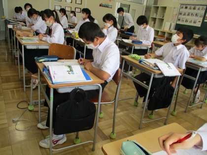 6月5日(月) 3年生(英語)「間接疑問文の使い方をまとめよう」 公開日 2023/06/12 更新日 2023/06/12 できごと Unit3では,間接疑問文を学習しました。疑問詞で始まる疑問文が文の目的語になる使い方です。意味は,疑問文の意味を生かし,「何が(いつ,どこで,・・・)〜なのか」となりますが,語順は,肯定文の語順になり,慣れるまで少しややこしいようです。練習問題をしながら,使い方を確認していました。