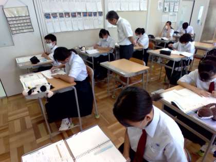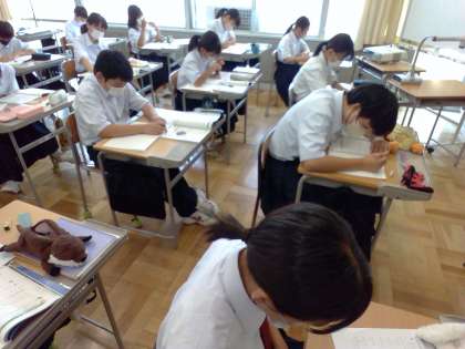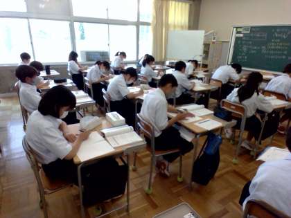 7月4日(火) 1年生(数学)「1次式を数でわる計算」 公開日 2023/07/05 更新日 2023/07/05 できごと これまでに、1次式に数をかける計算について学んできました。かけるときたので今日は、わる計算です。わる数の逆数を考え、かけ算にすることで、これまでの学習が活かせることが分かりました。練習をして身に付けていきます。 授業 1年