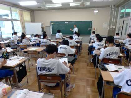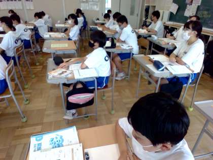 7月10日(月) 1年生(数学)「いろいろな1次式の計算をしよう」 公開日 2023/07/10 更新日 2023/07/10 できごと 前回までの1次式の加法、減法の続きです。ひき算の場合、分配法則を使って、かっこをはずしてから計算します。ミスが起きやすい場面です。練習問題をたくさん解いて身に付けていきます。 授業 1年