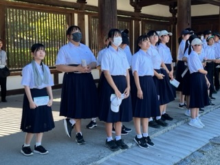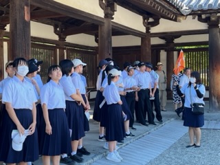 3年修学旅行 1日目 奈良法隆寺 公開日 2023/09/03 更新日 2023/09/03 3年修学旅行 バスで法隆寺に来ました。世界最古の木造建築です。千年の釘にいどむ という国語の教材でも有名です。