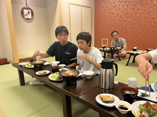 一方向を向いて食べてますが、みんなで食べるのはやっぱり美味しいですね。