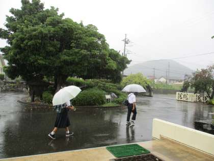 2年生は今日からチャレンジウィークです。体験開始の時間に合わせ,直接職場に行く生徒と一度鬼石中へ来てから職場に行く生徒がいます。朝から雨でしたが,出発する頃ちょうど強くなってしまいました。雨にも負けず,2年生がんばって。