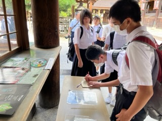 3年修学旅行 3日目 北野天満宮 公開日 2023/09/05 更新日 2023/09/05 3年修学旅行 絵馬をかいたり、お守りを買ったり、おみくじを引いたり、大黒さまにチャレンジしたり、有意義に過ごしました。