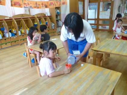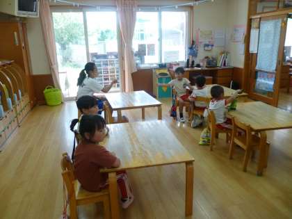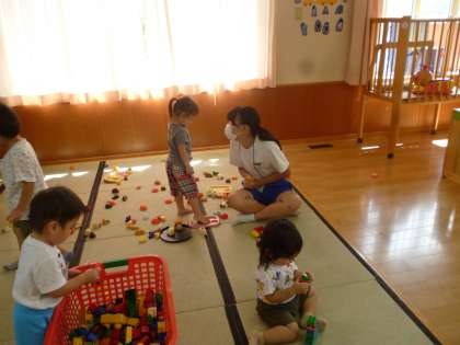 9月5日(火) 2年生チャレンジウィーク(御園保育園) 公開日 2023/09/05 更新日 2023/09/05 2年チャレンジウィーク お世話になっている3人が,年長組と年中組,0・1・2歳児のクラスに一人ずつ分かれて体験しています。クラスは日替わりです。さまざまな時期の園児と関われることはとてもよい経験です。 水分補給のときには一人一人に声をかけながら飲み物をついだり、園児と一緒におもちゃで遊んだりと,楽しく取り組んでいました。 行事 地域連携 2年