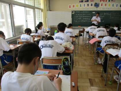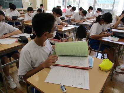 9月5日(火) 1年生(英語)「できること・できないこと」 公開日 2023/09/05 更新日 2023/09/05 できごと 助動詞can を使って,できることやできないことを伝え合います。小学校の外国語で練習してきている表現なので,みんなスムーズに使えていました。中学校では,さらに多くの動詞を使ったり,副詞を付け足したりして,より詳しく伝えられるようになります。