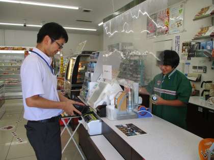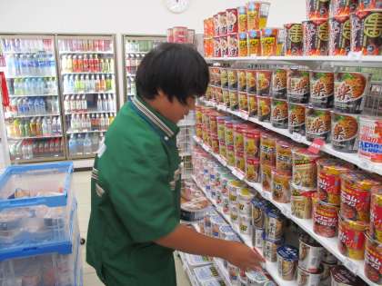 セブン・イレブンの制服に身を包み、品出しやレジでの対応などにてきぱきと取り組んでいました。とっても似合っています。