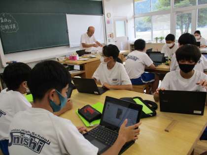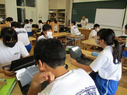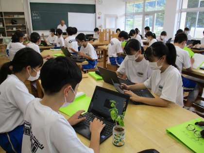 9月5日(火)1年生(技術科)「植物を観察して育成しよう」 公開日 2023/09/05 更新日 2023/09/05 できごと 1学期に,ミントやバジル,リーフレタスの育成をしました。夏休み前に家に持ち帰り,さらに観察を続け,最後には美味しくいただきました。2学期はじめの今日の授業で,観察記録などを共有して振り返りました。