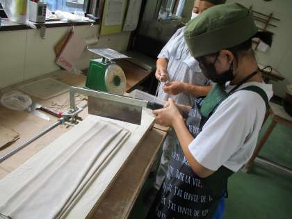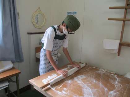 9月6日(水) 2年生チャレンジウィーク(天神茶屋) 公開日 2023/09/07 更新日 2023/09/07 2年チャレンジウィーク 本日、天神茶屋では、そば打ちの体験をさせていただきました。 写真上:そば粉をこね 写真中:綿棒で伸ばして 写真下:切ります 自分たちで打ったそばを事業所の皆様に食べていただいたところ、うまくできたとほめてもらえたそうです。うれしかったですね。 行事 地域連携 2年