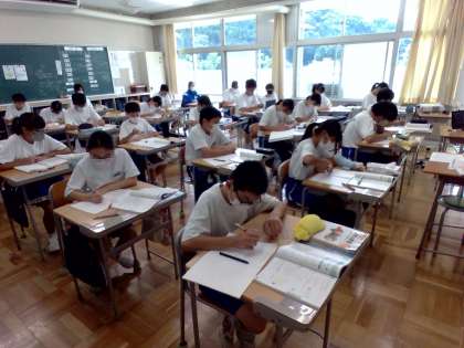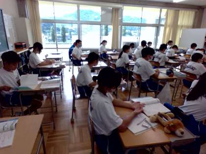 9月7日(木) 1年生(数学)「方程式を手際よく解く方法」 公開日 2023/09/11 更新日 2023/09/11 できごと 方程式は、等式の性質を使ってx=□の形にすれば解を求められることを学びました。これをもう少し手際よく解くことはできないでしょうか。等式の性質1と2を使って、一方の辺にある項を、その符号を変えて他方の辺に移せばいいんですね。「移項」といいます。計算練習を通して身に付けていきます。 授業 1年