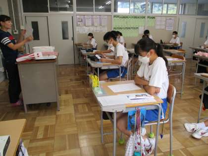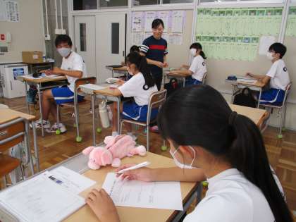9月7日(木) 3年生(学活)「修学旅行を振り返ろう」 公開日 2023/09/11 更新日 2023/09/11 できごと 3日間の奈良・京都への修学旅行を終え,3年生が鬼石中に帰って来ました。1時間目は学活で,修学旅行を振り返りました。充実した3日間を過ごし,たくさんの思い出ができ,教室は笑顔でいっぱいでした。 さらに,奈良・京都で感じたり考えたりしたことを鬼石のまちづくりに生かす学習につなげていきます。