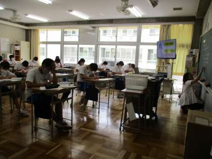 9月7日(木) 3年生(社会)「人権の歴史と憲法」 公開日 2023/09/11 更新日 2023/09/11 できごと 3年生の公民の学習は「人権」「個人の尊重」をキーワードにした単元に入りました。一番のもとになるものが「憲法」です。これから「日本国憲法」について詳しく学習していきます。
