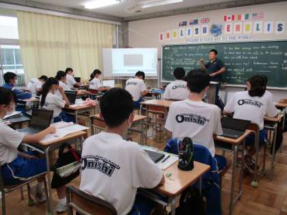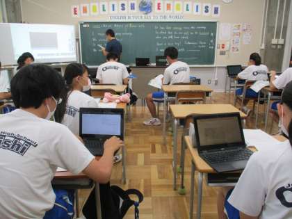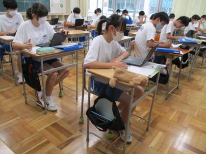 9月8日(金) 3年生(英語)「修学旅行を英語で振り返ろう」 公開日 2023/09/11 更新日 2023/09/11 できごと 3年生は,英語の授業でも修学旅行の振り返りがありました。訪ねた場所,見たものや食べたものを,分かりやすく伝えます。これまでに学習した,つなぎ言葉や,気持ちを表す表現を,上手に使っています。