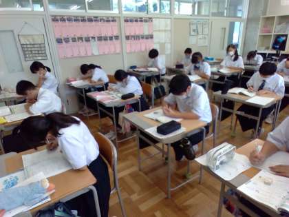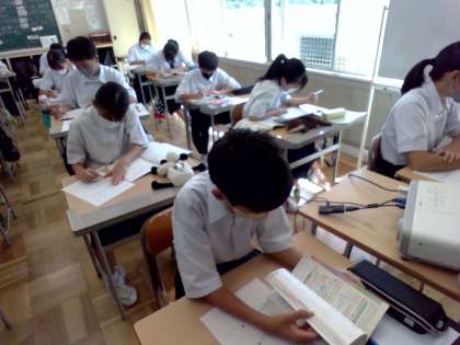 9月29日(金) 1年生(数学)「方程式の計算練習の続き」 公開日 2023/09/29 更新日 2023/09/29 できごと 今日も方程式の計算練習をします。自分がミスしているところをしっかり分析して、来週月曜の単元テストに臨んでほしいと思います。 授業 1年