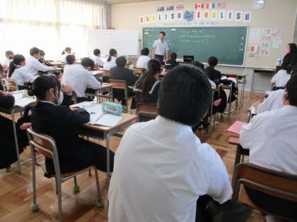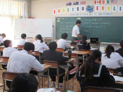 「〜してくれませんか?」という依頼の仕方についての学習をしていました。ALTに続いて、しっかりと声を出して練習していました。