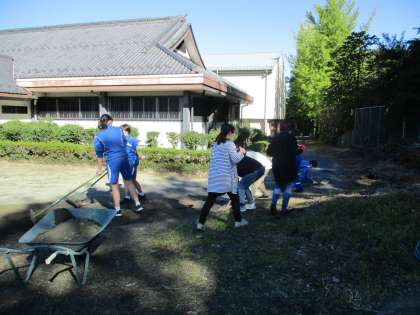 3年生の保護者や生徒を中心に,校庭の整備をしていただきました。草や苔を取り除き,整地して,よい状態になりました。