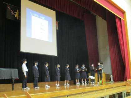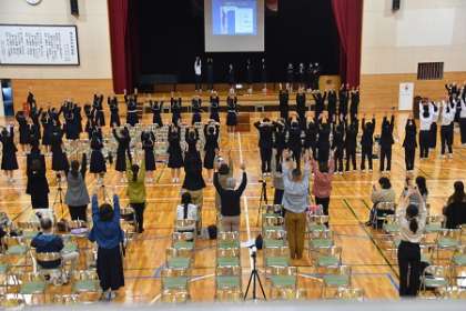 10月25日(水) 桜華祭2(保健委員会発表) 公開日 2023/11/04 更新日 2023/11/04 できごと 保健委員会より「けがをしない体づくり」について発表がありました。ストレッチや簡単な運動をすることで,けがをしない体をつくることができます。生徒をはじめ,会場にいる皆さんで一緒に挑戦してみました。