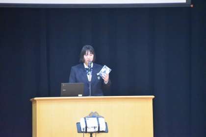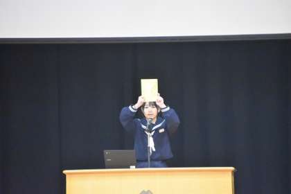 ビブリオバトルとは,おすすめの本を制限時間内にアピールし,聴衆が一番読みたいと思った本に投票します。2年生と3年生が国語の授業で行い,選ばれたバトラー3人ずつが桜華祭で発表しました。