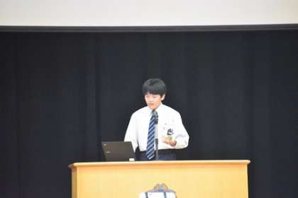 10月25日(水) 桜華祭7(ビブリオバトル2) 公開日 2023/11/04 更新日 2023/11/04 できごと 司会も生徒がやっています。バトラーの勢いは言うまでもなく,司会者の進行も上手で,とても盛り上がりました。聴衆は授業のときと同様に審査をしました。審査結果は閉会行事で発表です。すばらしい発表で,どの本も読んでみたくなりました。
