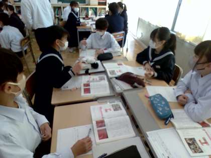 10月26日(木) 1年生(道徳)「なおしもん」 公開日 2023/11/04 更新日 2023/11/04 できごと 今日の道徳は、輪島塗を直しながらながら世代を超えて使っていく文化「なおしもん」について触れ、郷土に根ざした伝統と文化について考えていきました。最後に、鬼石の伝統や文化を大切にする心やそれらを大切にすることについて考えました。地域の行事に”参加”することや、地域の文化を”発信”していくことが大切と考える生徒がたくさんいました。 授業 1年