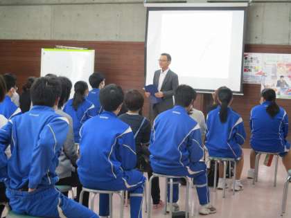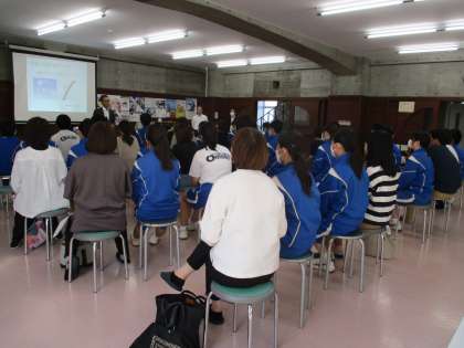 3年生の親子進路学習会がありました。生徒と保護者が横に並び,進路について一緒に考える時間です。進路決定までの道すじや入試についての話があり,特に来年度から大きく変わる群馬県公立高校入試について真剣に聞いていました。また,時折,親子で顔を見合わせたり,そっと耳元で相談したりする様子も見られました。じっくり考え,夢に向かって歩みを進めていきます。
