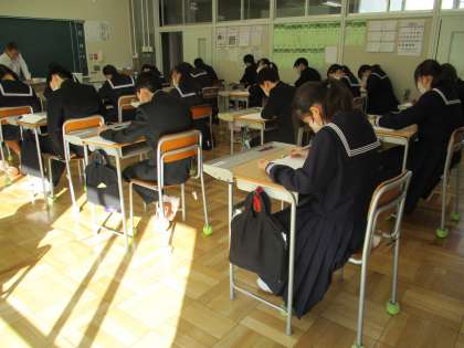 三者面談直前の実力テストです。今回からは,群馬公立高等学校入試で受検する教科順(国語・数学・英語・社会・理科)で受けることになりました。少しずつ入試の時期が近付いてきていることを実感します。みんな真剣に取り組んでいました。