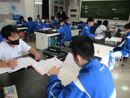 11月13日(月) 2年生(理科)「直列回路や並列回路に加わる電圧」 公開日 2023/11/14 更新日 2023/11/14 できごと 直列回路でも並列回路でも回路全体を流れる電流の大きさは変わらないことを学習しました。では,回路全体やそれぞれの豆電球に加わる電圧の大きさはどうなっているのか,回路ををつくってはかった結果をもとに,考えていきました。班で協力しながら進めていきました。