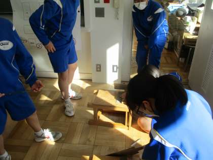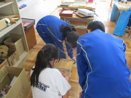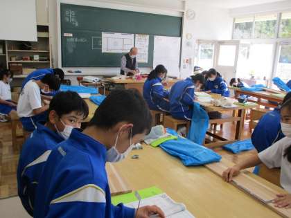 生徒は、切断線のけがきをしたり、のこぎり引きの練習をしたりしていました。自分の理想とする製品に綺麗に仕上げたいですね。