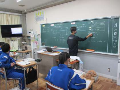 相似な図形の面積比や体積比はどのようになっているのかについての学習を進めていました。式や形だけを覚えることは簡単ですが、やはり「なぜそうなのか?」というところを大切にしていきたいですね。