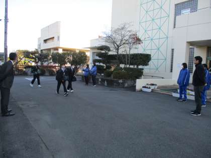 11月20日(月) 鬼石中あいさつ運動 公開日 2023/11/21 更新日 2023/11/21 できごと 地域の民生・児童委員さんが来校し,学期に一度の鬼石中あいさつ運動を実施しました。2学期は2年生が中心になり,始業時刻が近付くにつれて玄関前がどんどんにぎやかになりました。テスト前の月曜日でしたが,和やかな朝になりました。ありがとうございました。