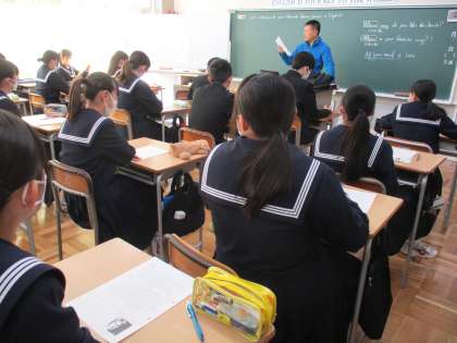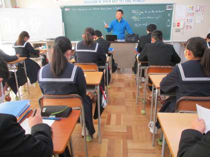 11月22日(水) 3年生(英語)「英語の歌に親しもう」 公開日 2023/11/26 更新日 2023/11/26 できごと ウォームアップは英語の歌です。最近でも新曲の“Now and Then”で話題になっている The Beatles の4人が映し出されていました。今回の歌は“All I Need is Love”です。学習してきた関係代名詞の用法を思い出させるタイトルです。名曲を口ずさみながら英語の授業が始まりました。