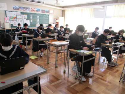 11月20日(月) 3年生(国語)「自己PR」 公開日 2023/11/26 更新日 2023/11/26 できごと 先週行われた期末テストが返されたあと,少し苦手な作文の練習をしました。今日のお題は「自己PR」です。長所を見つけてアピールし,短所はどう克服していくかを考え,分かりやすく伝えます。自分のことって意外と分かっていないものですね。