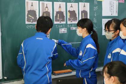 生徒は、この5人のうち、かぐや姫に最もふさわしい男性を選び根拠を述べる【推しポイント】を考え意見交流しました。誰一人取り残されることなく、皆真剣に課題に取り組む姿が見られうれしく思いました。