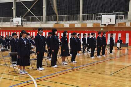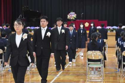 そして,鬼石中学校の一員となった新入生が退場していきました。みんなほっとした表情で教室へ向かいました。
