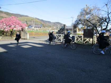 4月10日(水) 登校の様子 公開日 2024/04/14 更新日 2024/04/14 できごと 前日の雨の中での登校とはうってかわって,晴れ渡る空の下を生徒たちが元気よく登校してきました。新学期のはじまり,春の交通安全運動期間ということで,先生たちも通学路の要所で交通指導をしています。
