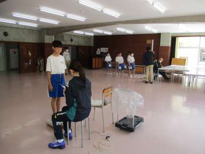 4月11日(木) 身体測定 公開日 2024/04/14 更新日 2024/04/14 できごと 学期の始まりには身長体重の測定,年度の始まりには視力や聴力も測定します。 各学年,静かに順序よく進められ,予定より早く終わりました。