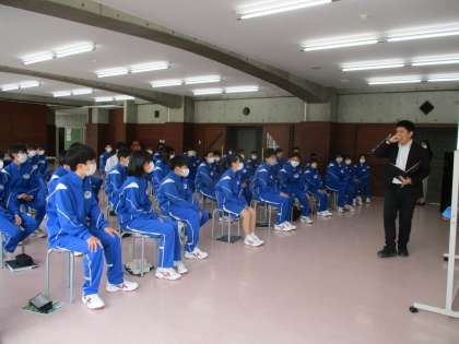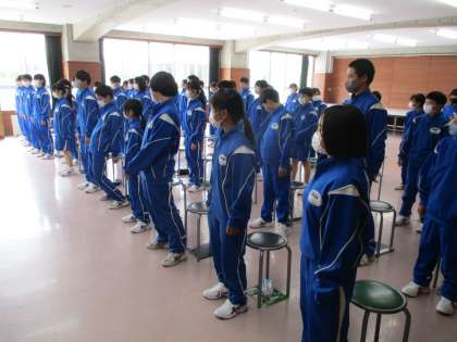 4月11日(木) 1年生・2年生(合同音楽)「鬼石中校歌を歌おう」