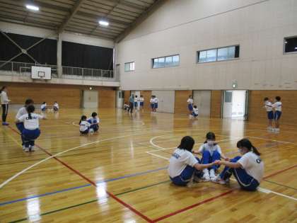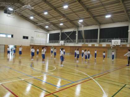 4月12日(金) 1年生(保健体育)「体ほぐしの運動で体を動かそう」 公開日 2024/04/14 更新日 2024/04/14 できごと 1時間目の保健体育の時間は,半袖Tシャツとハーフパンツに着替えて,体育館に集合しました。準備運動のあと,体を動かす楽しさや心地よさを感じてほしいという指導者の願いが伝えられ,体ほぐしの運動から始まりました。体育館いっぱいに広がって,思い切り体を動かしました。