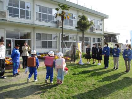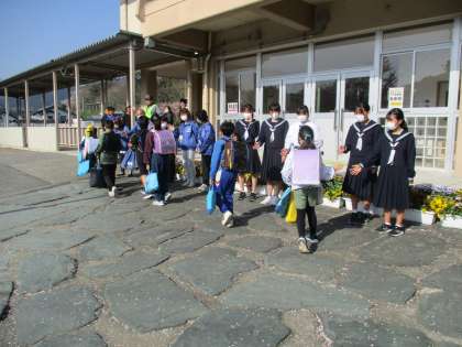 4月15日(月) 小中あいさつ運動 公開日 2024/04/15 更新日 2024/04/15 できごと 新年度2週目の始まりは晴天に恵まれた気持ちのよい朝となりました。 そんな中,今年度初めてのあいさつ運動がありました。民生・児童委員の皆さんや見守り隊の皆さんなど地域の方々と一緒に,児童会・生徒会本部とボランティア参加の「あいさつし隊」が,各小学校であいさつをしました。天気と同様に気持ちのよいあいさつが聞こえていました。 皆さん,ありがとうございます。